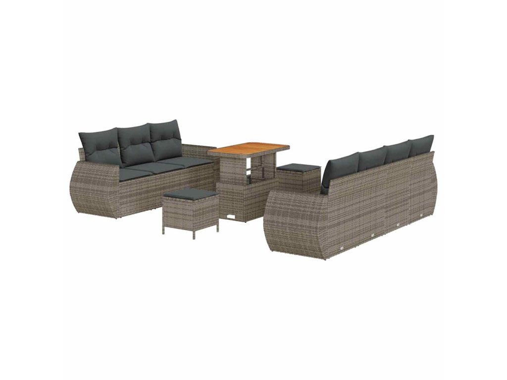 Sada zahradních pohovek s polštářem 10 pcs Šedá polyratan 3361843