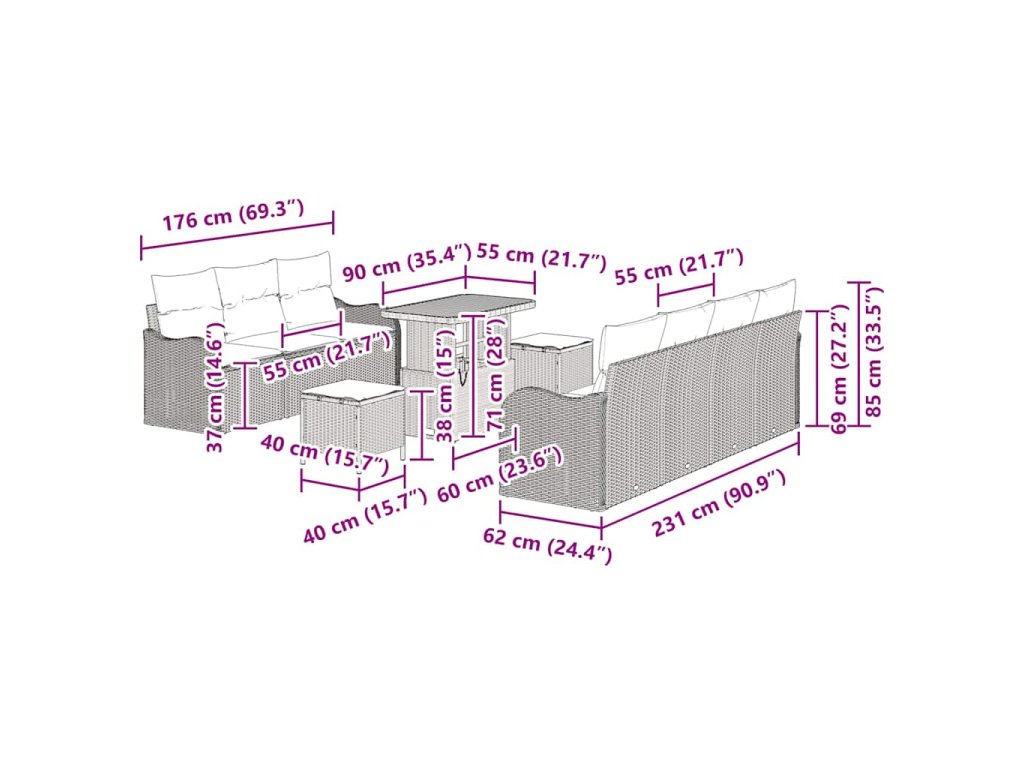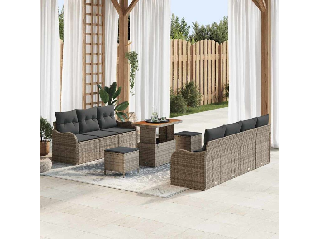 Sada zahradních pohovek s polštářem 10 pcs Šedá polyratan 3362233