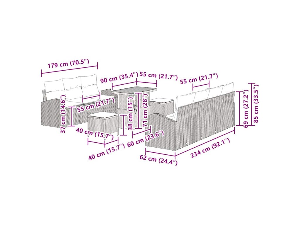 - Univerzální využití: Ideální pro využití na jaře a v létě na zahradě, sofa set se hodí na terasy a do zahrad, nabízí variabilitu od útulných sezení po větší společenské akce a umožňuje různá uspořádání.