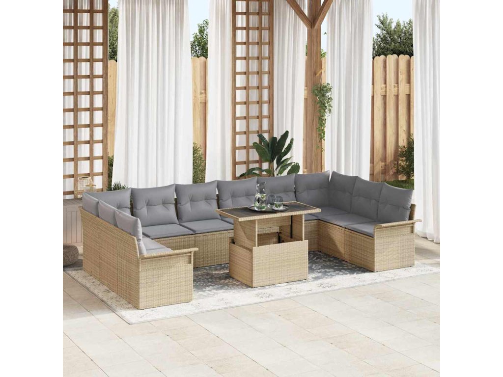 Sada zahradních pohovek s polštářem 11 pcs Béžová Poly ratan 3348356
