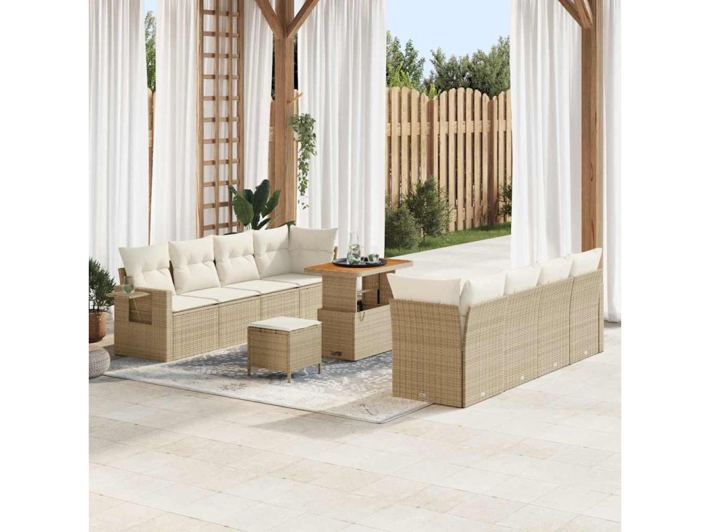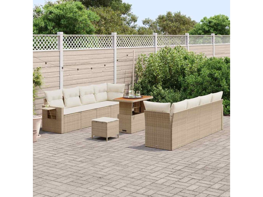 Sada zahradních pohovek s polštářem 11 pcs Béžová Poly ratan 3361721