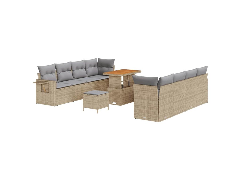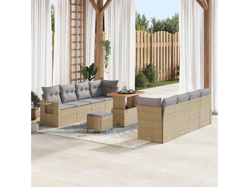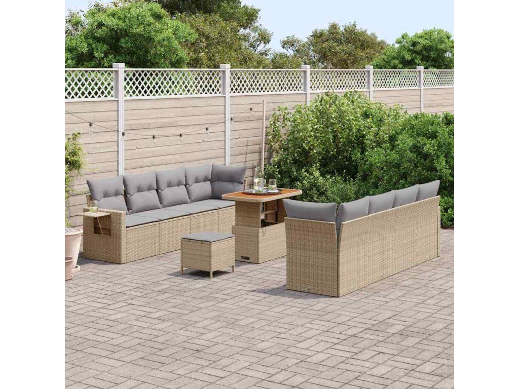 Sada zahradních pohovek s polštářem 11 pcs Béžová Poly ratan 3361722