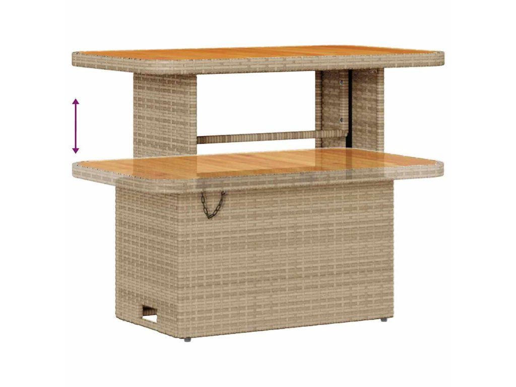 - Nastavitelný stůl: Stůl má nastavitelnou výšku, což vám umožní rychle změnit z kávového stolu na výšku pro stolování. Tato funkce je skvělá pro venkovní akce a splňuje všechny potřeby hostů s elegancí. Je to kombinace funkce a stylu pro pohodlný venkovní život.