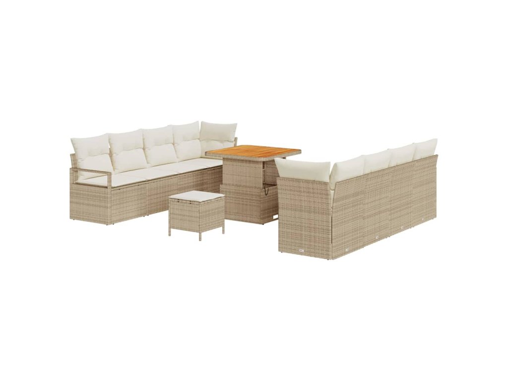 Sada zahradních pohovek s polštářem 11 pcs Béžová Poly ratan 3362496