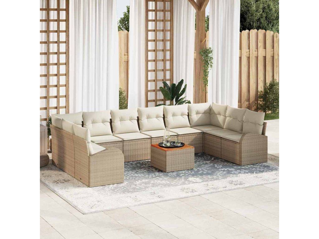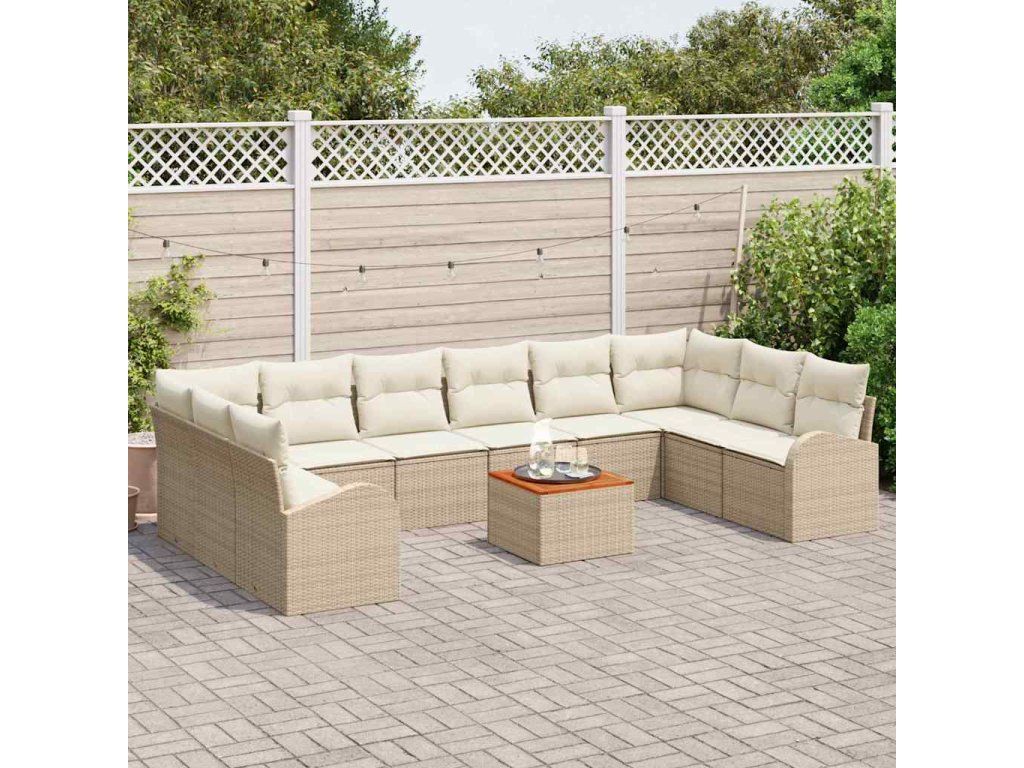 Sada zahradních pohovek s polštářem 11 pcs Béžová polyratan 3347631