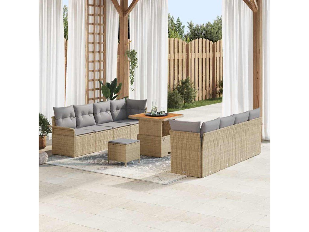 Sada zahradních pohovek s polštářem 11 pcs Béžová polyratan 3362107