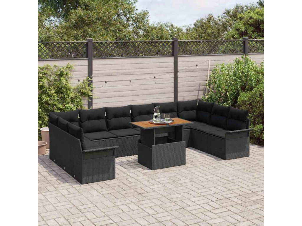 Sada zahradních pohovek s polštářem 11 pcs Černá 3349386