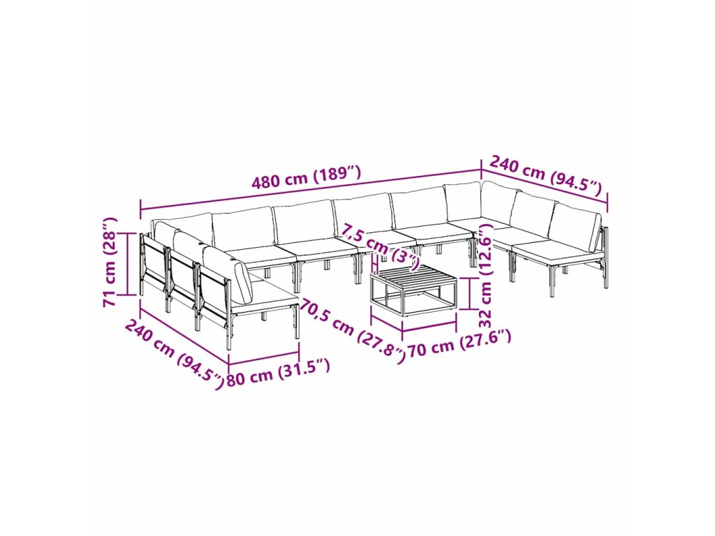 - 8 x centrální pohovka: 80 x 80 x 71 cm (DxŠxV)