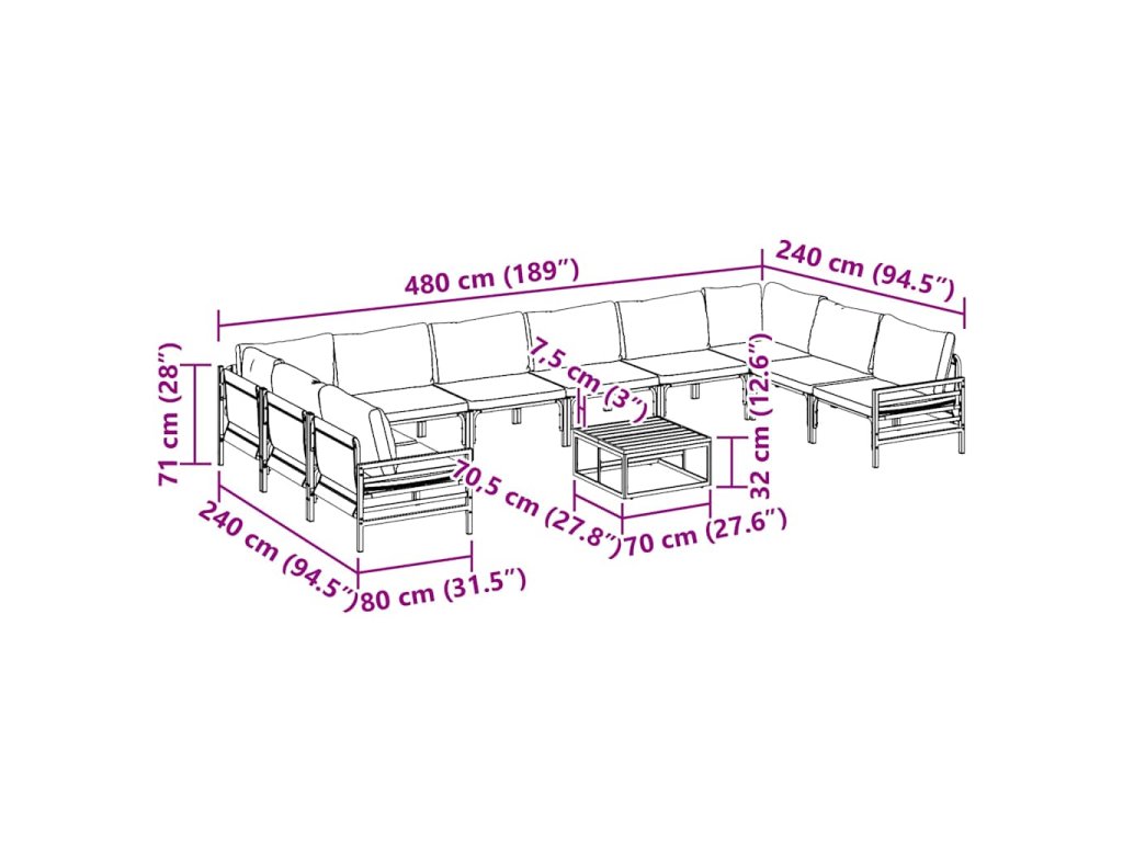 - 6 x Středová pohovka: 80 x 80 x 71 cm (DxŠxV)