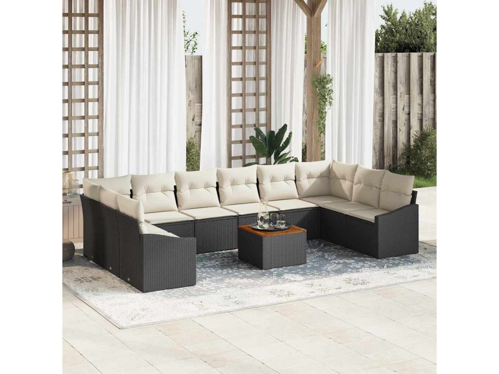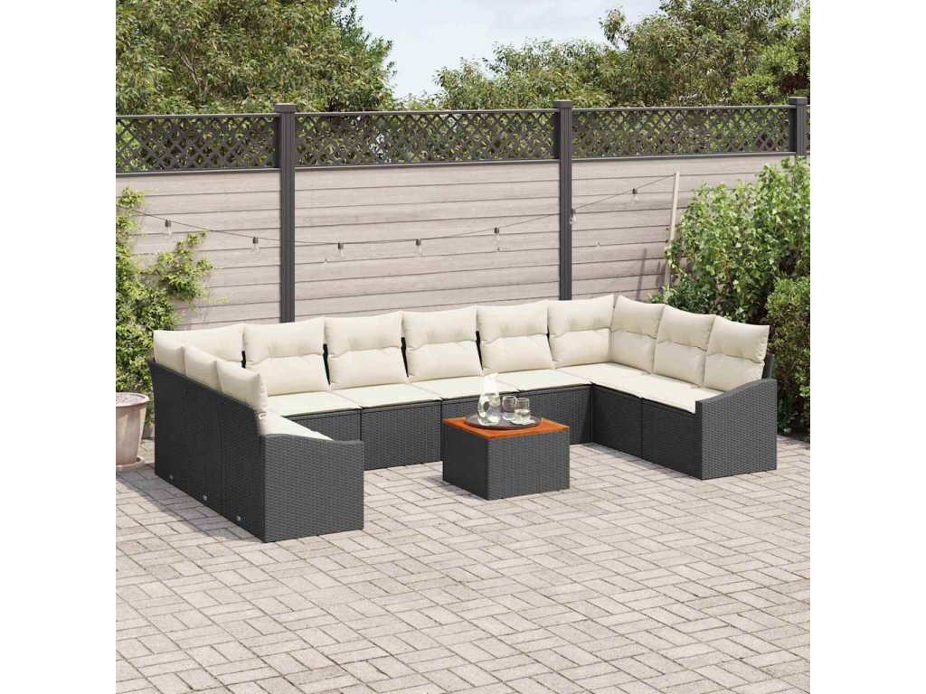 Sada zahradních pohovek s polštářem 11 pcs Černá Poly ratan 3347880