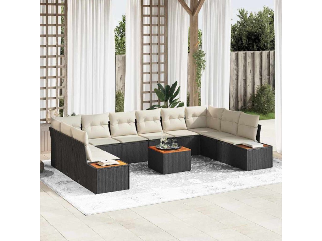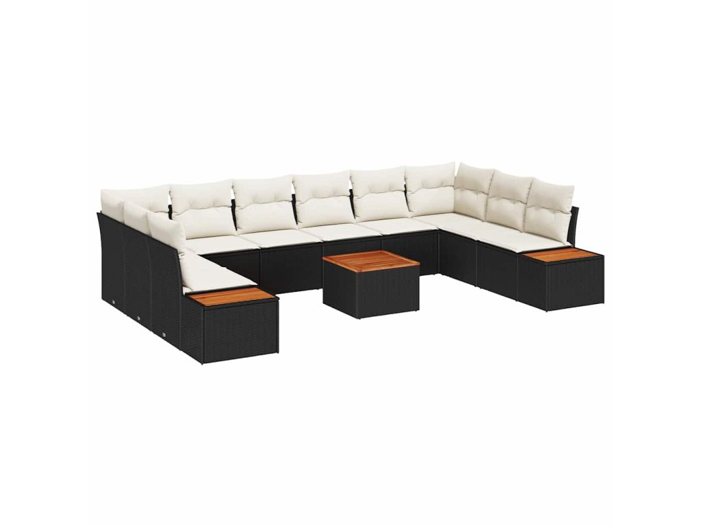 Sada zahradních pohovek s polštářem 11 pcs Černá Poly ratan 3348178