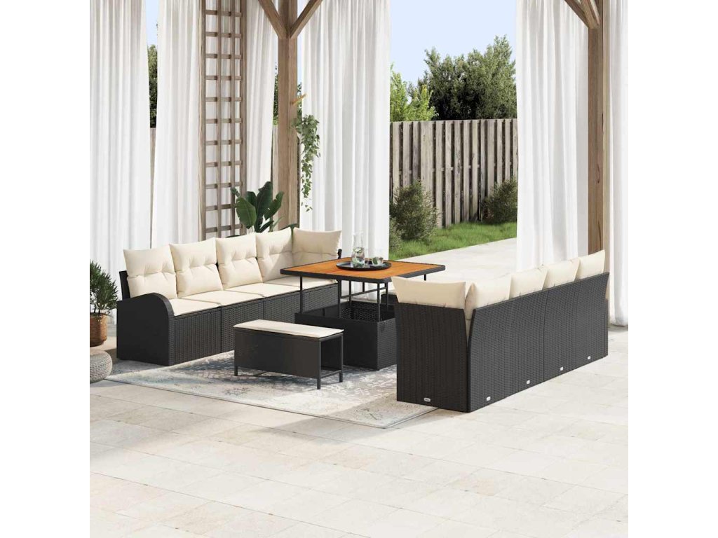 Sada zahradních pohovek s polštářem 11 pcs Černá Poly ratan 3362375