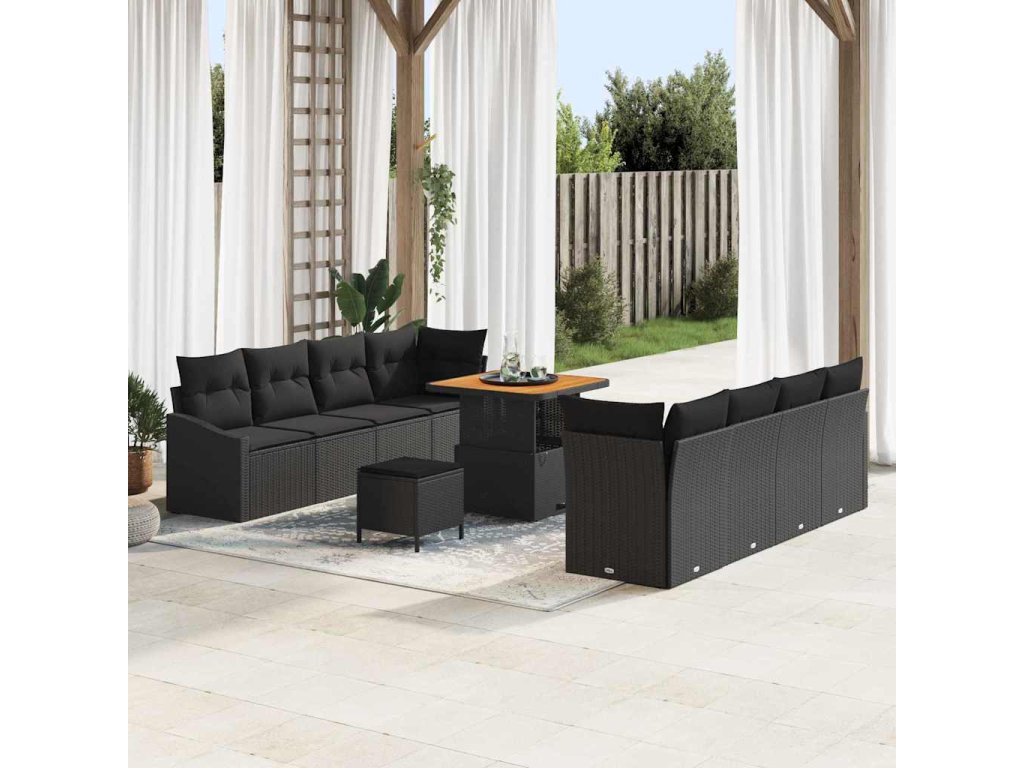 Sada zahradních pohovek s polštářem 11 pcs Černá Poly ratan 3362624