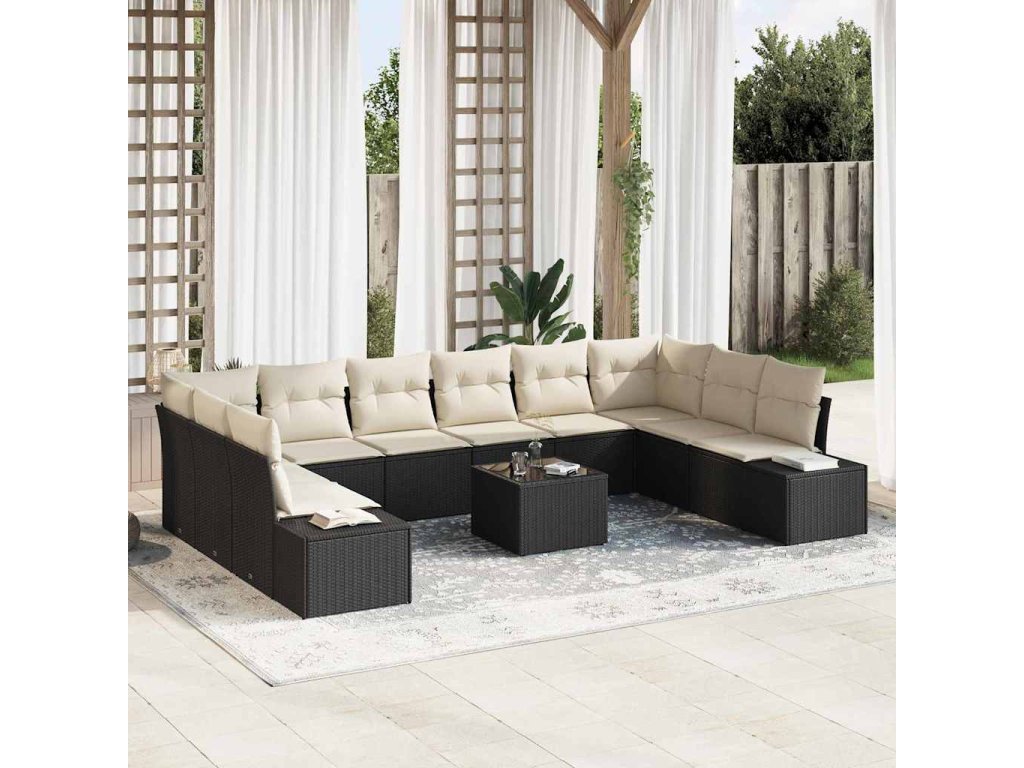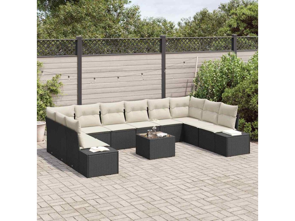 Sada zahradních pohovek s polštářem 11 pcs Černá polyratan 3347247