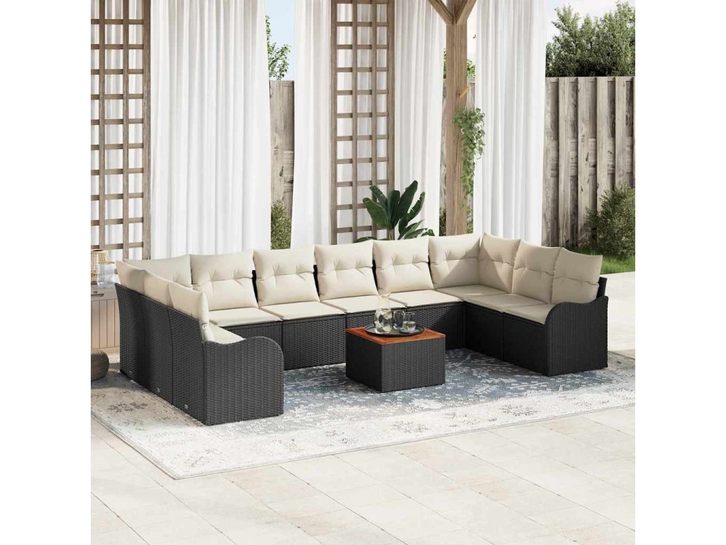 Sada zahradních pohovek s polštářem 11 pcs Černá polyratan 3347502