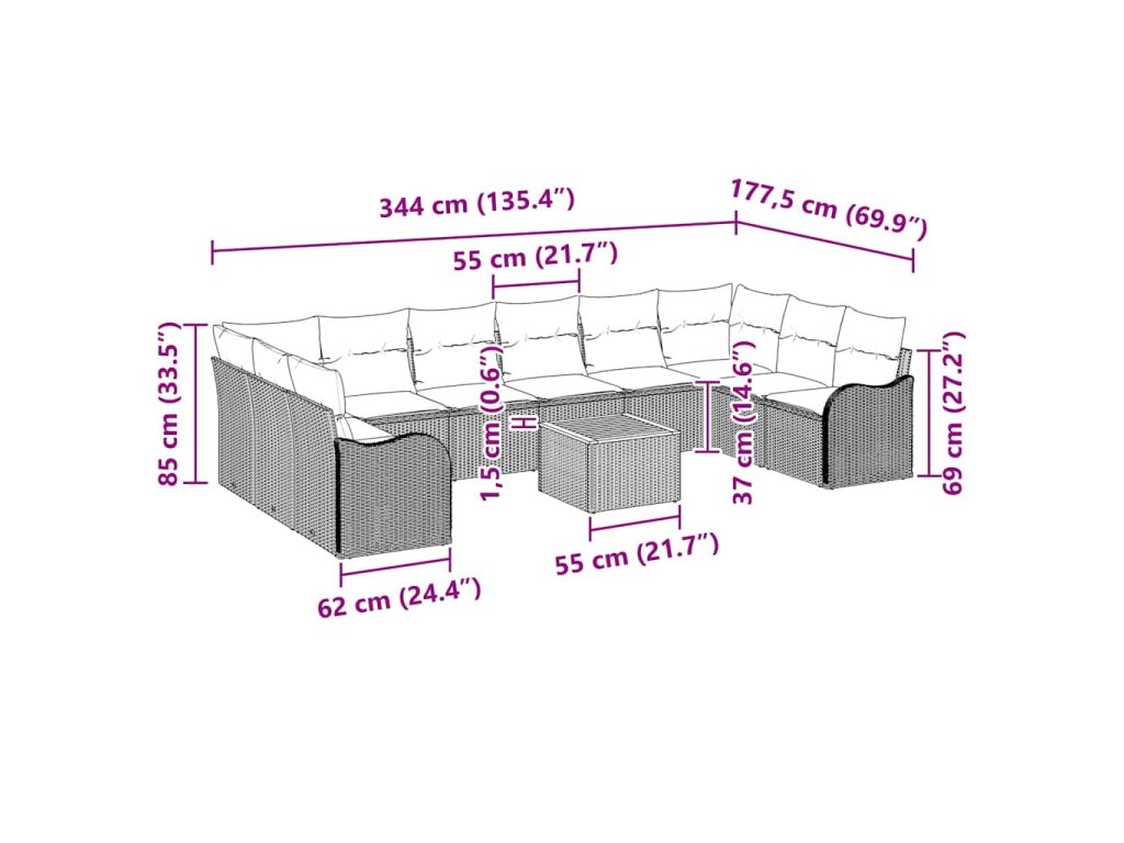 - 6 x Střední sedátko: 55 x 62 x 85 cm (D x Š x V)