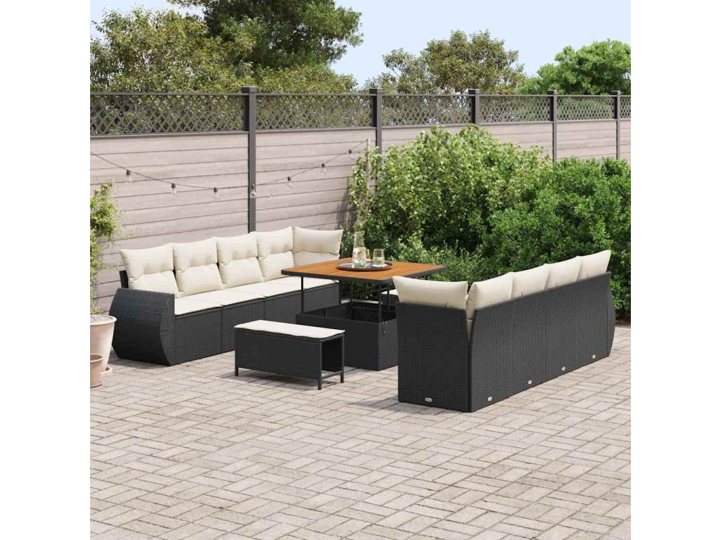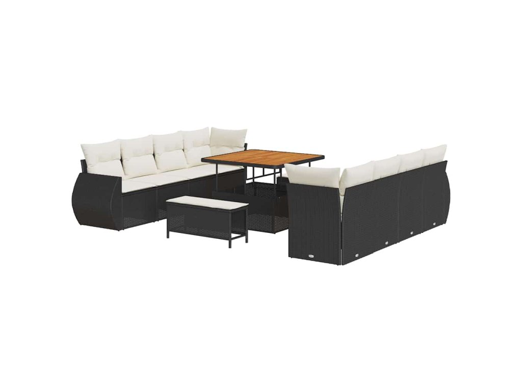Sada zahradních pohovek s polštářem 11 pcs Černá polyratan 3361855