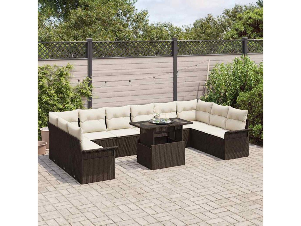 Sada zahradních pohovek s polštářem 11 pcs Hnědá Poly ratan 3348354