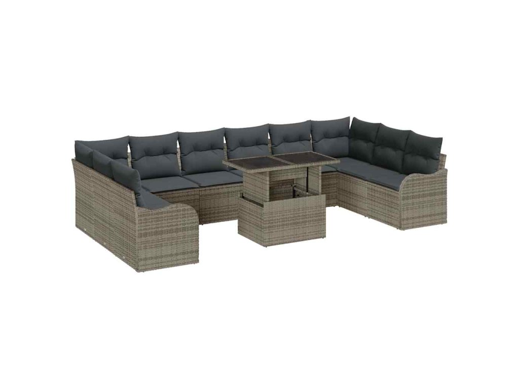Sada zahradních pohovek s polštářem 11 pcs Šedá Poly ratan 3348535