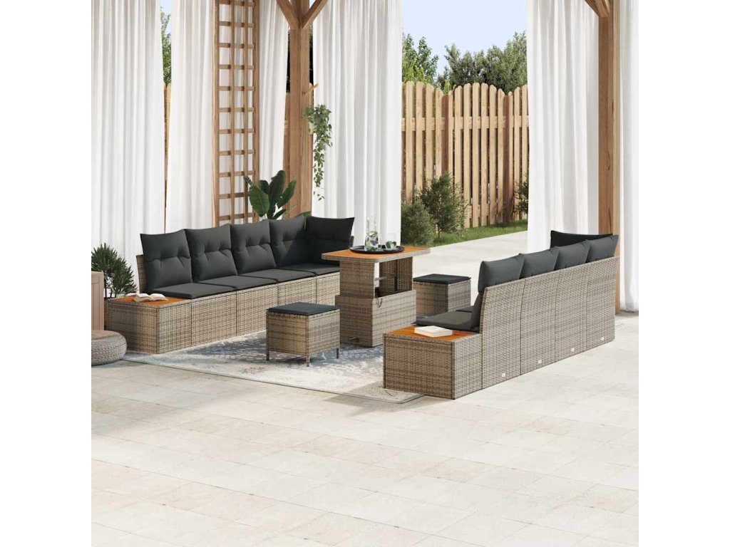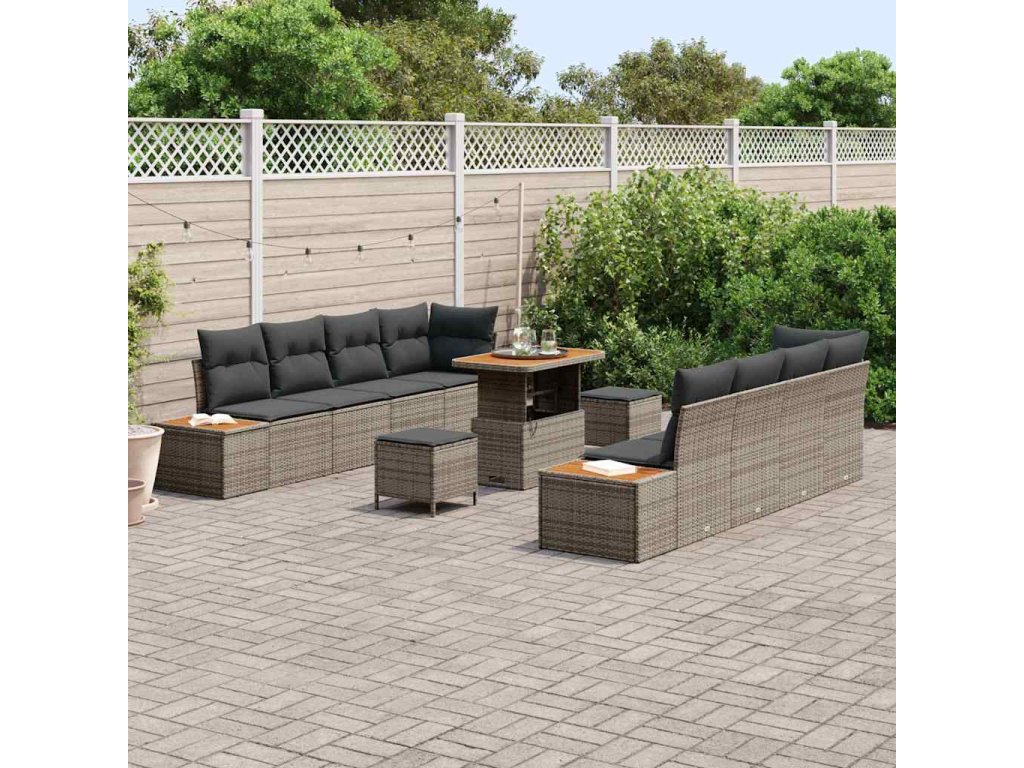 Sada zahradních pohovek s polštářem 11 pcs Šedá Poly ratan 3364843
