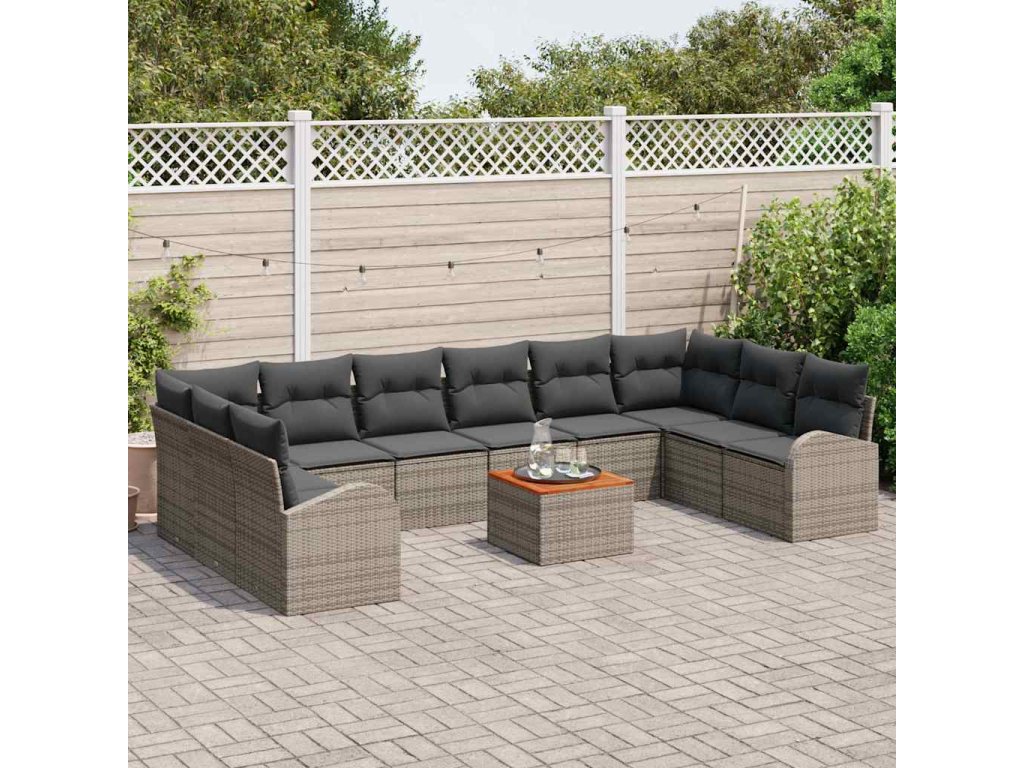 Sada zahradních pohovek s polštářem 11 pcs Šedá polyratan 3347629