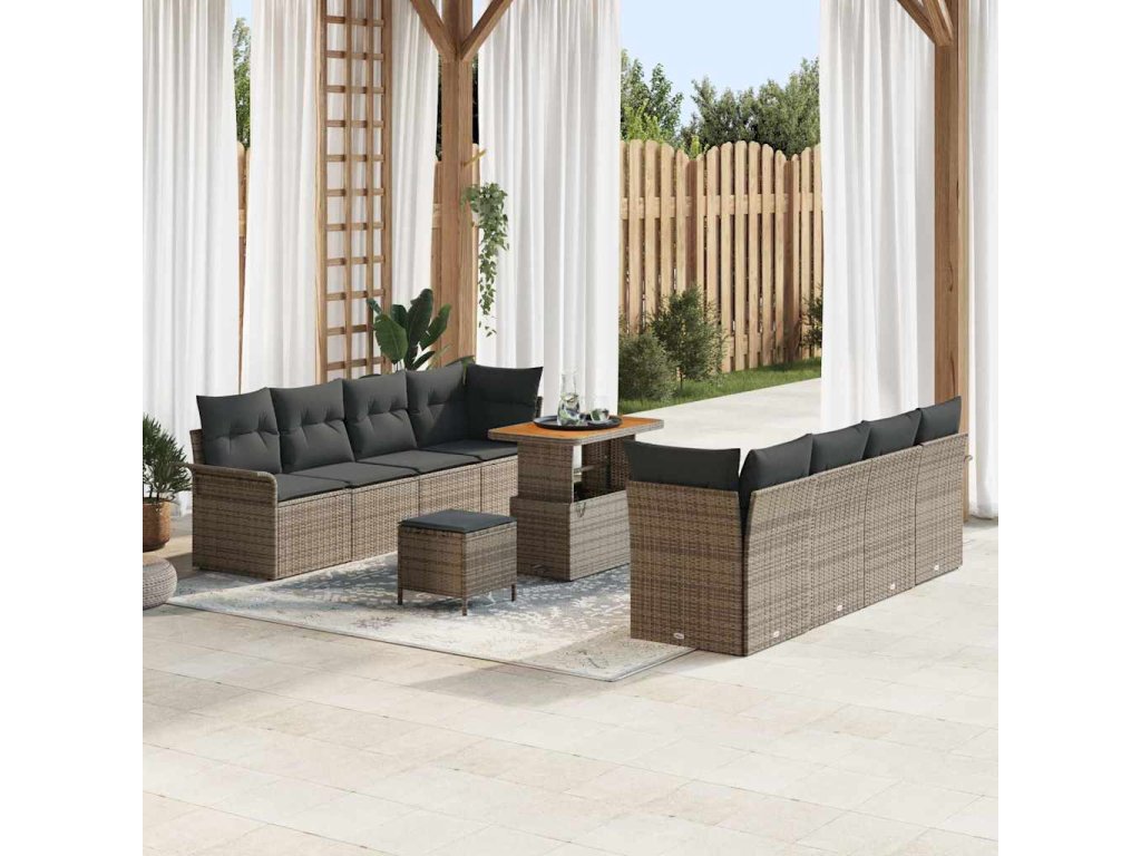 Sada zahradních pohovek s polštářem 11 pcs Šedá polyratan 3362113