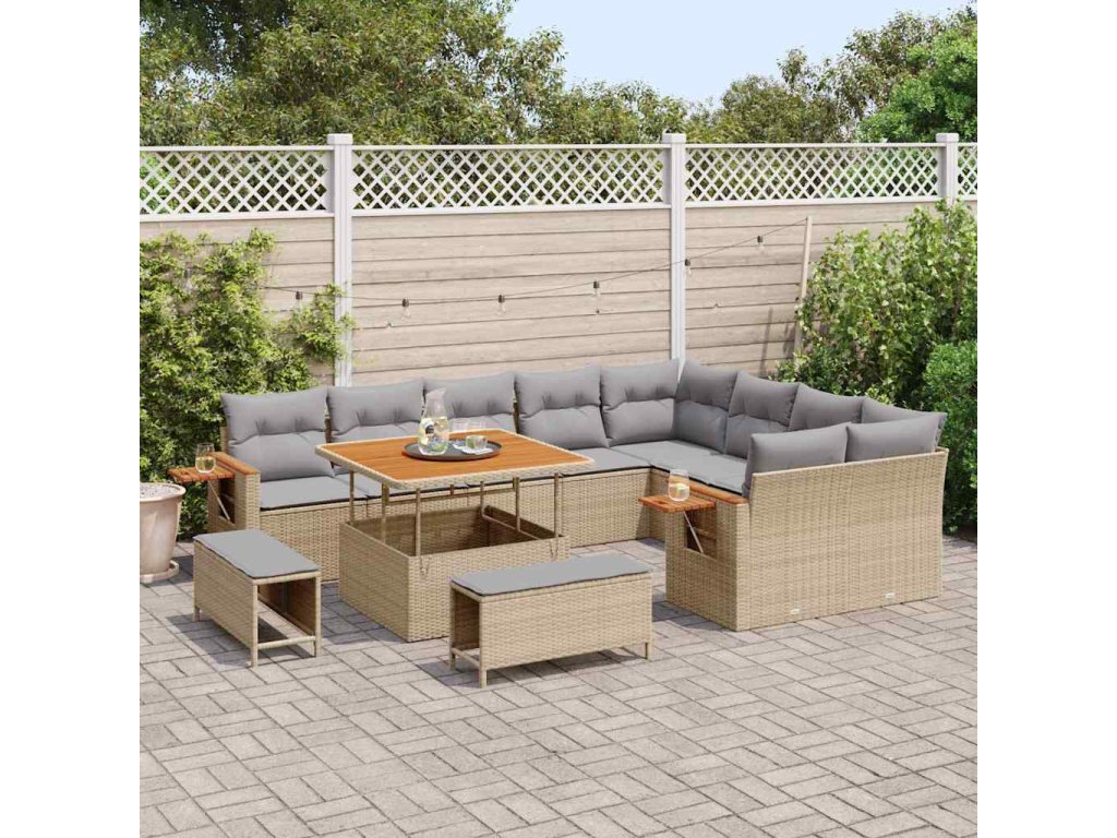 Sada zahradních pohovek s polštářem 12 pcs béžová a světle šedá 3363207