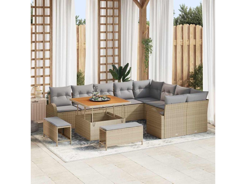 Sada zahradních pohovek s polštářem 12 pcs Béžová a Světle šedá 3364377