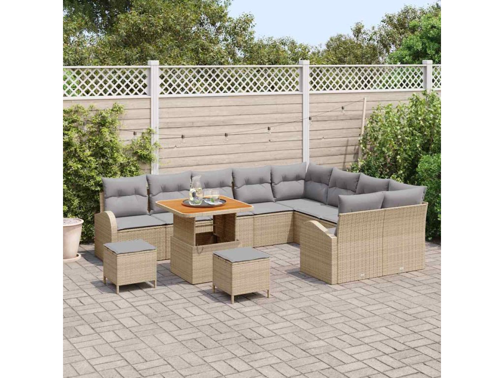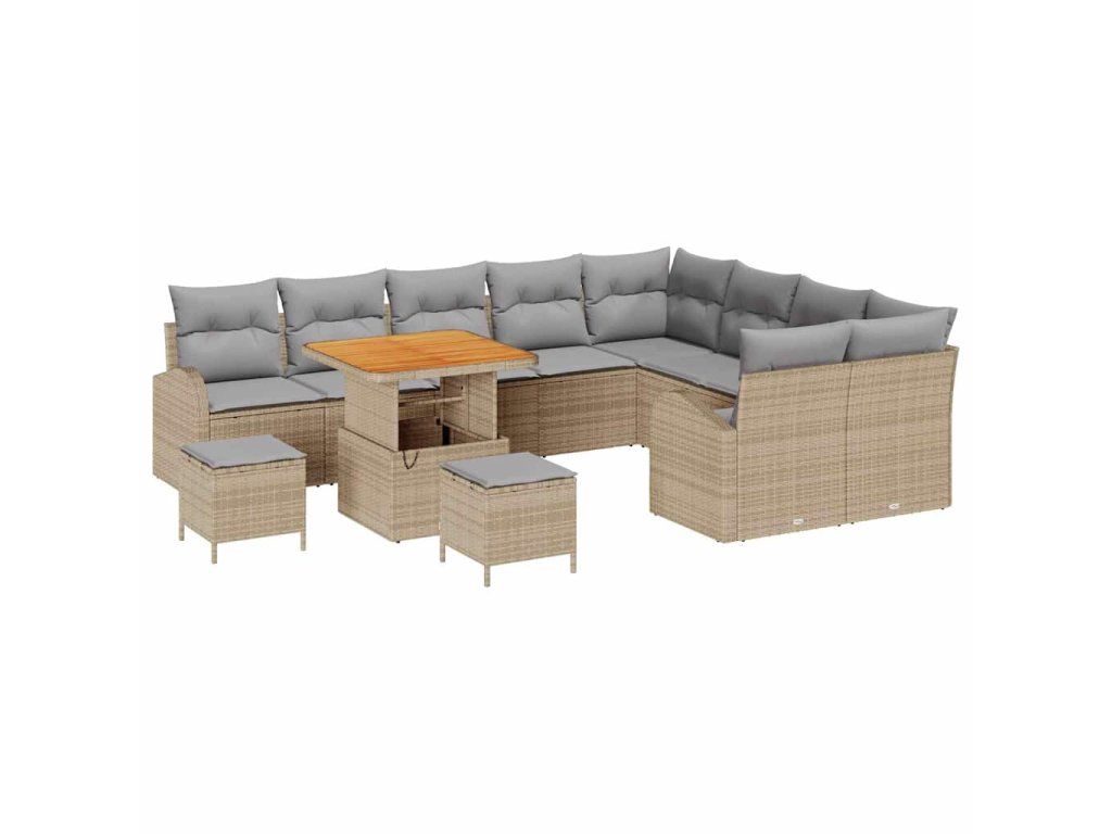 Sada zahradních pohovek s polštářem 12 pcs Béžová Poly ratan 3362432