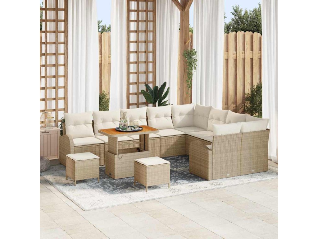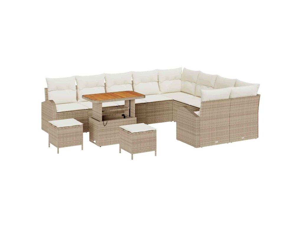 Sada zahradních pohovek s polštářem 12 pcs Béžová Poly ratan 3362436