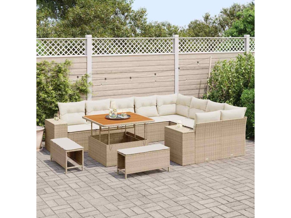 Sada zahradních pohovek s polštářem 12 pcs Béžová polyratan 3362036