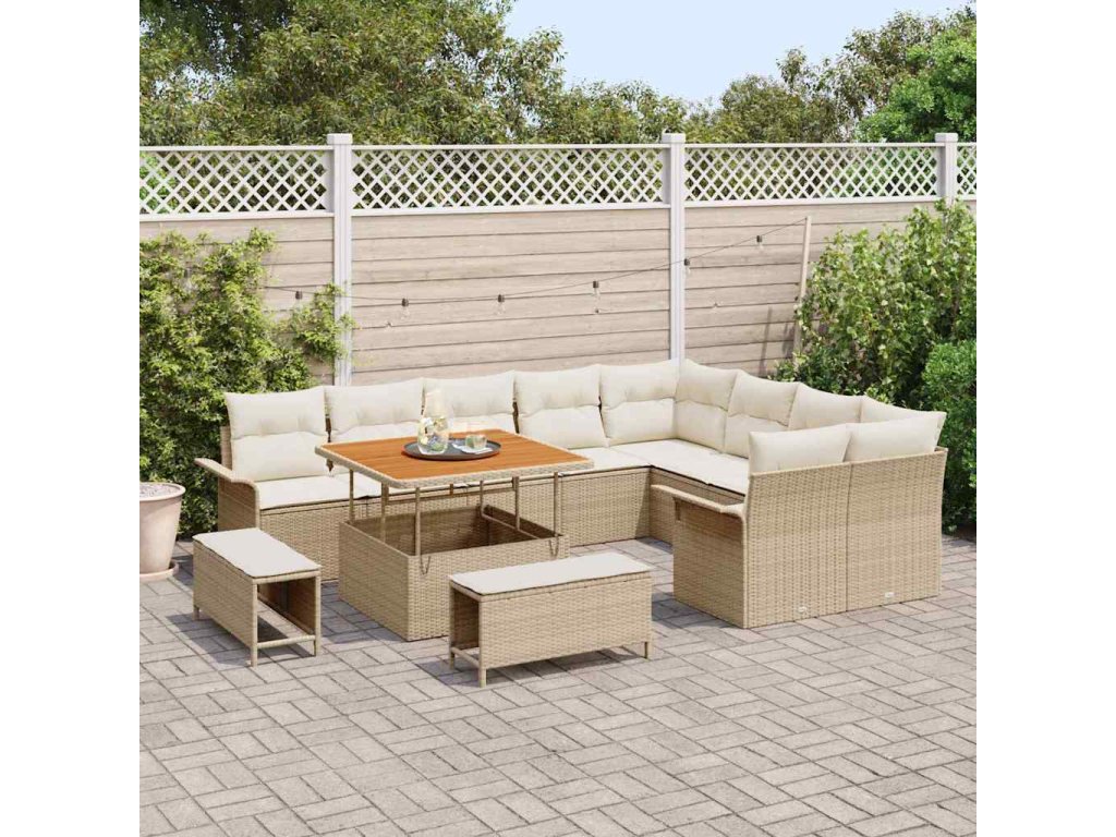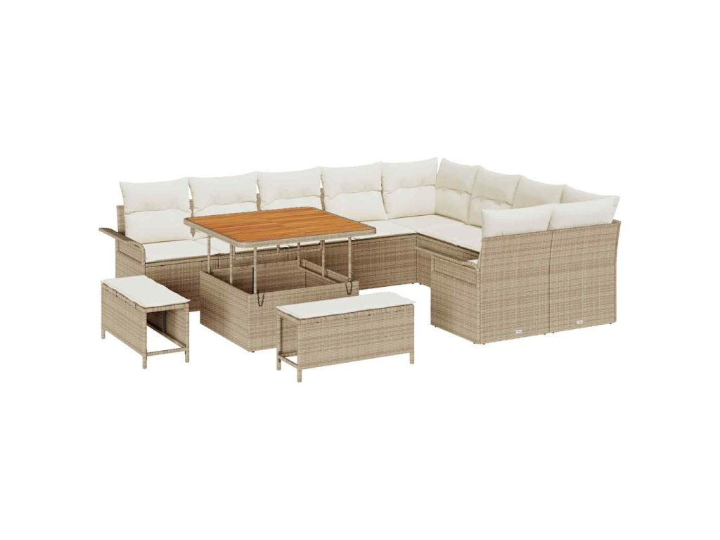 Sada zahradních pohovek s polštářem 12 pcs Béžová polyratan 3362166