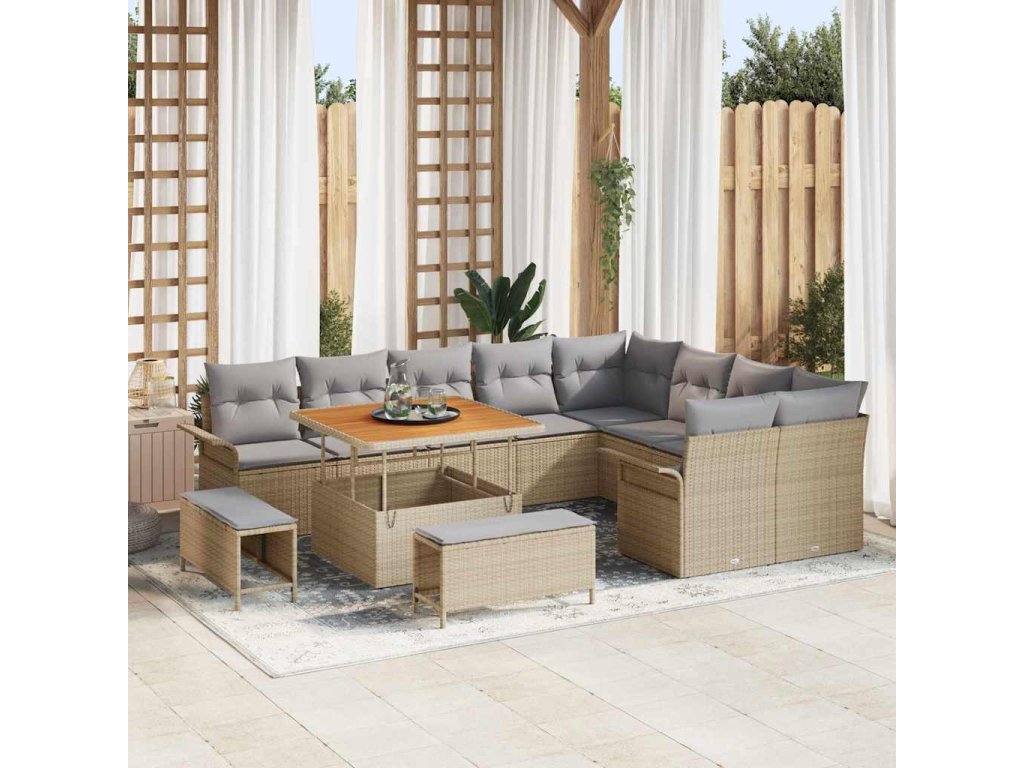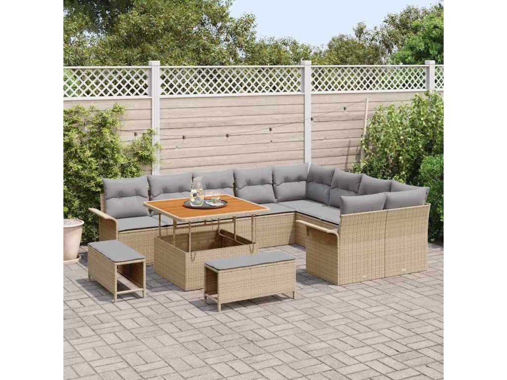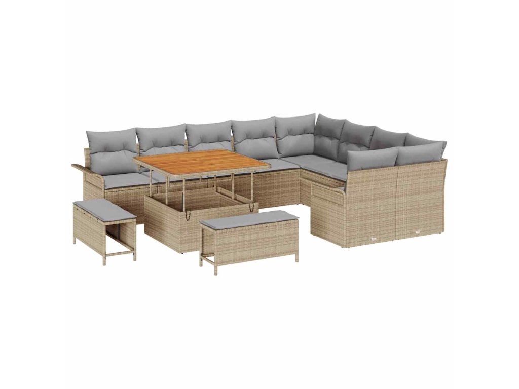 Sada zahradních pohovek s polštářem 12 pcs Béžová polyratan 3362167