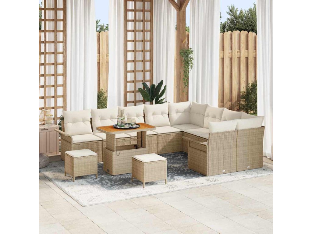 Sada zahradních pohovek s polštářem 12 pcs Béžová polyratan 3362176