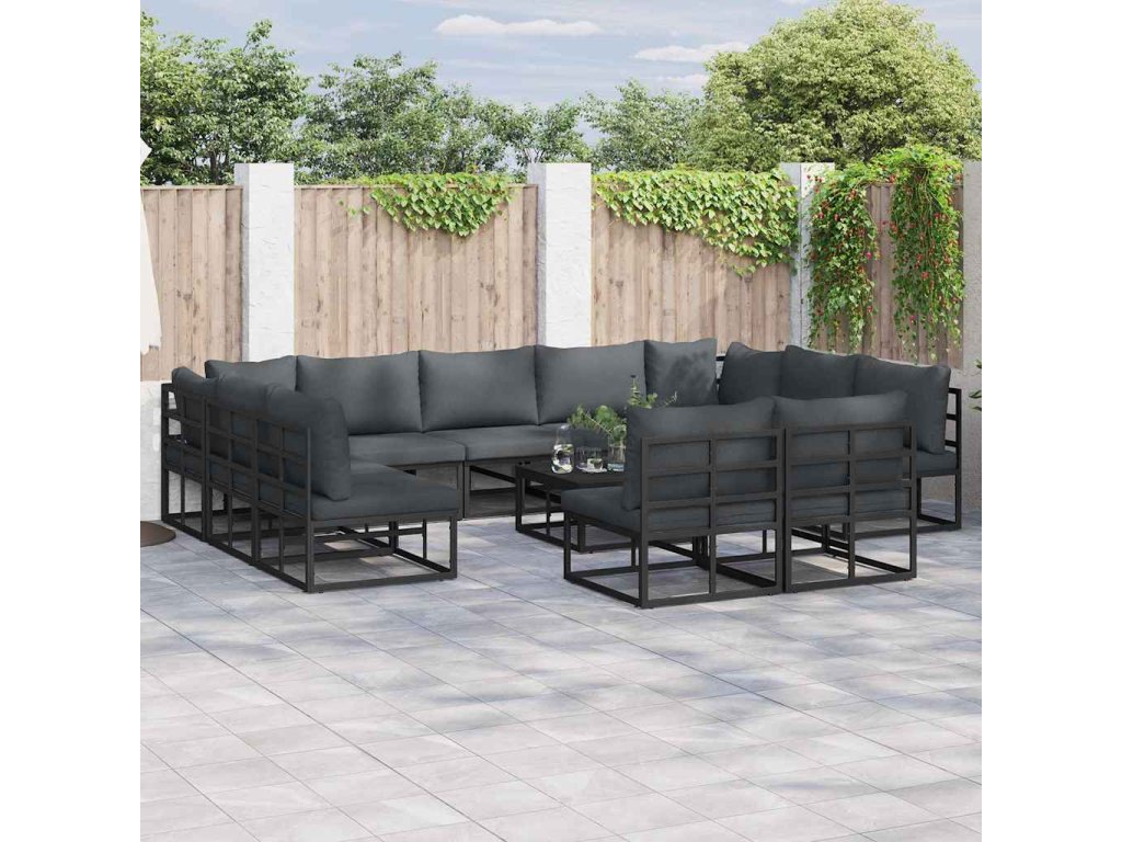 Sada zahradních pohovek s polštářem 12 pcs Černá Hliník 3378917