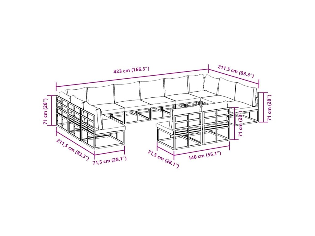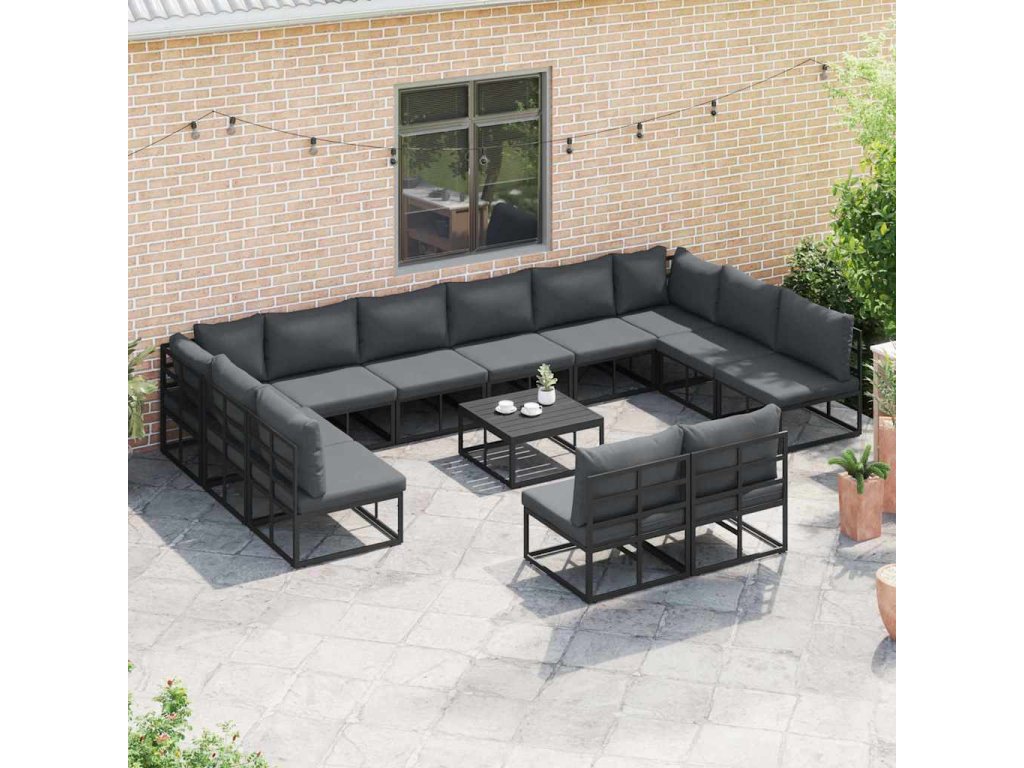 Sada zahradních pohovek s polštářem 12 pcs Černá Hliník 3378918