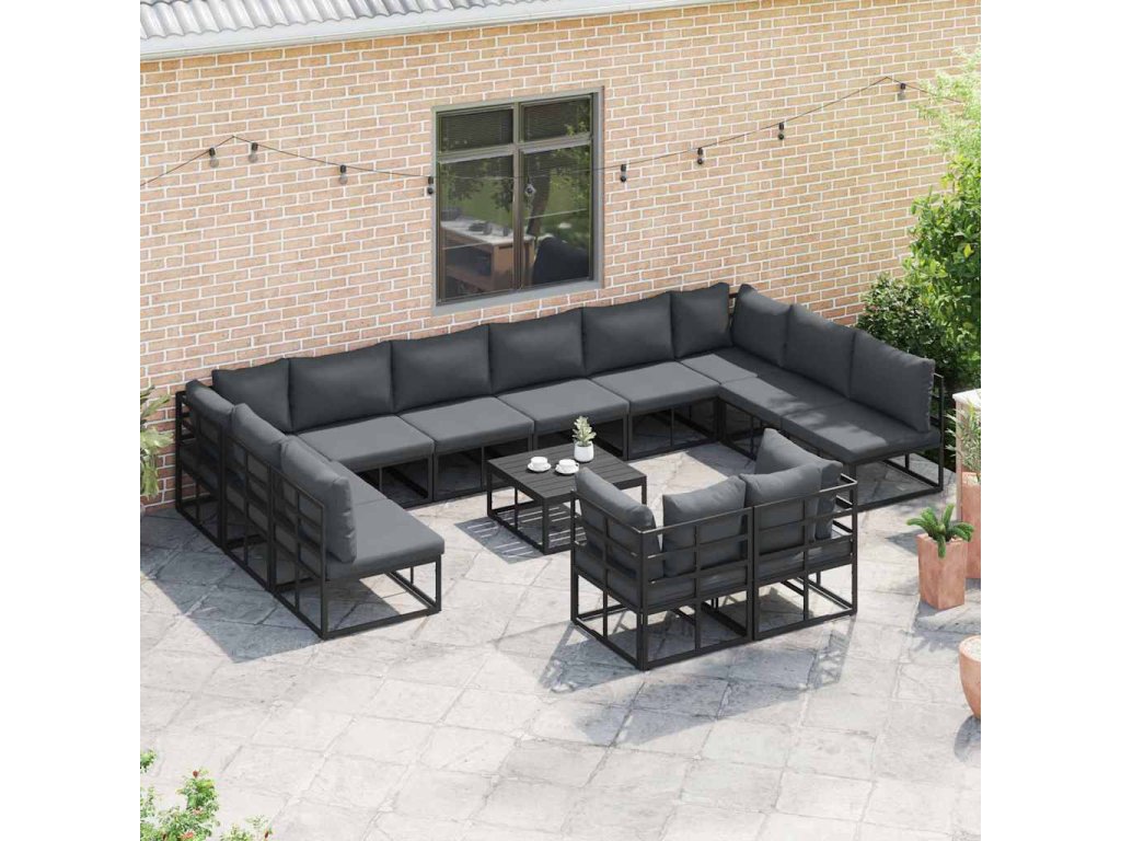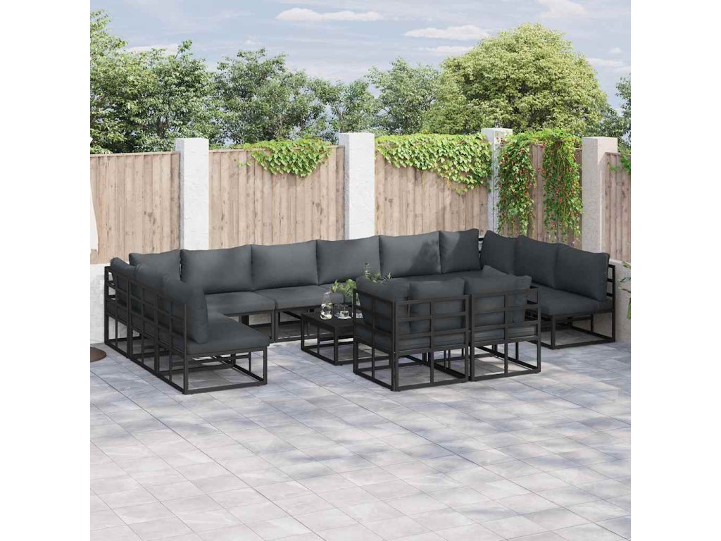 Sada zahradních pohovek s polštářem 12 pcs Černá Hliník 3378924