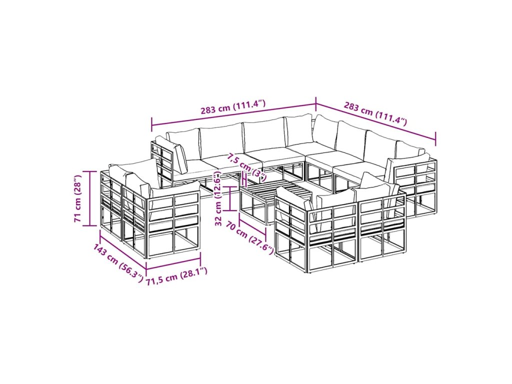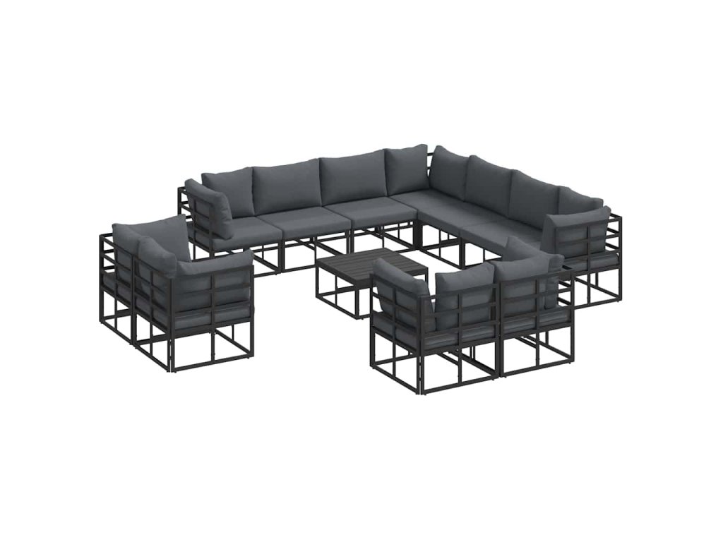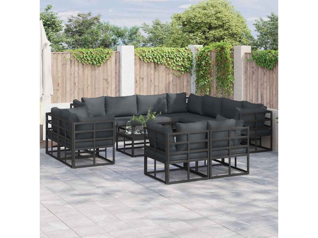 Sada zahradních pohovek s polštářem 12 pcs Černá Hliník 3378933
