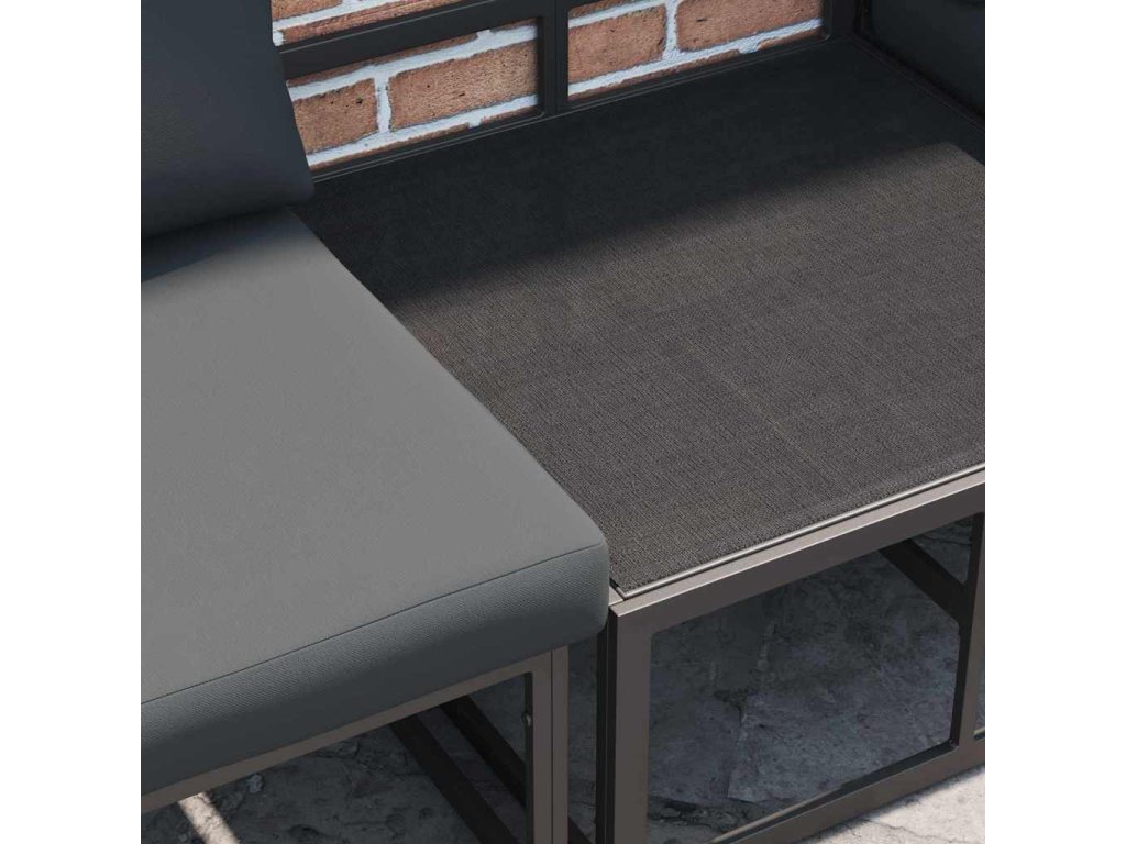 - Odolné materiály: Tato pohovková souprava se může pochlubit pevným hliníkovým rámem, který zaručuje stabilitu a dlouhou životnost. Materiál je odolný proti venkovním podmínkám, což ji předurčuje k dlouhodobému používání. Polyesterové polštáře vydrží sluneční světlo a zachovají si svůj vzhled i po letech.