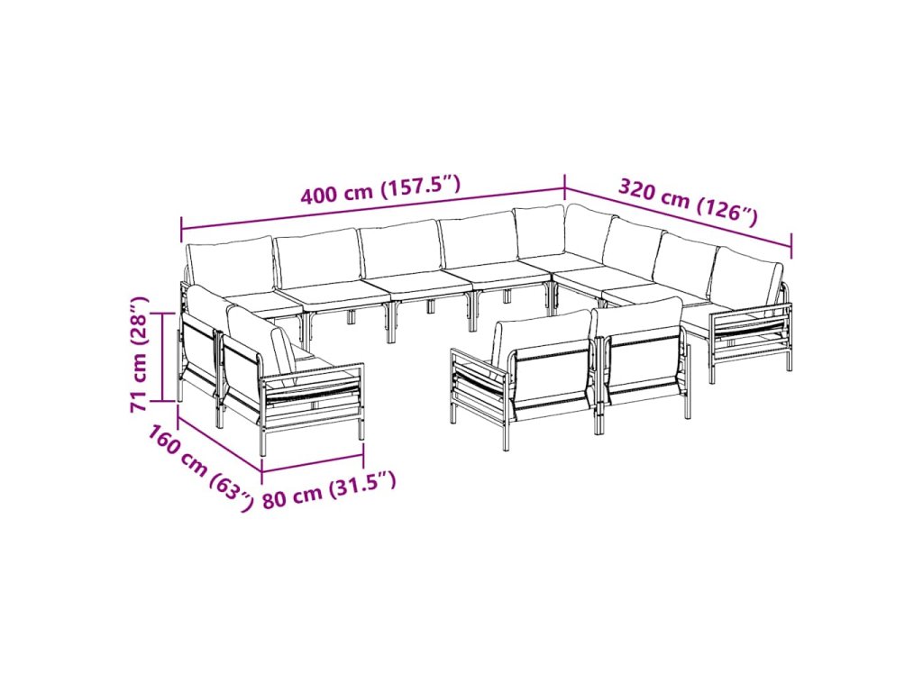 - 5 x středová pohovka: 80 x 80 x 71 cm (ŠxHxV)