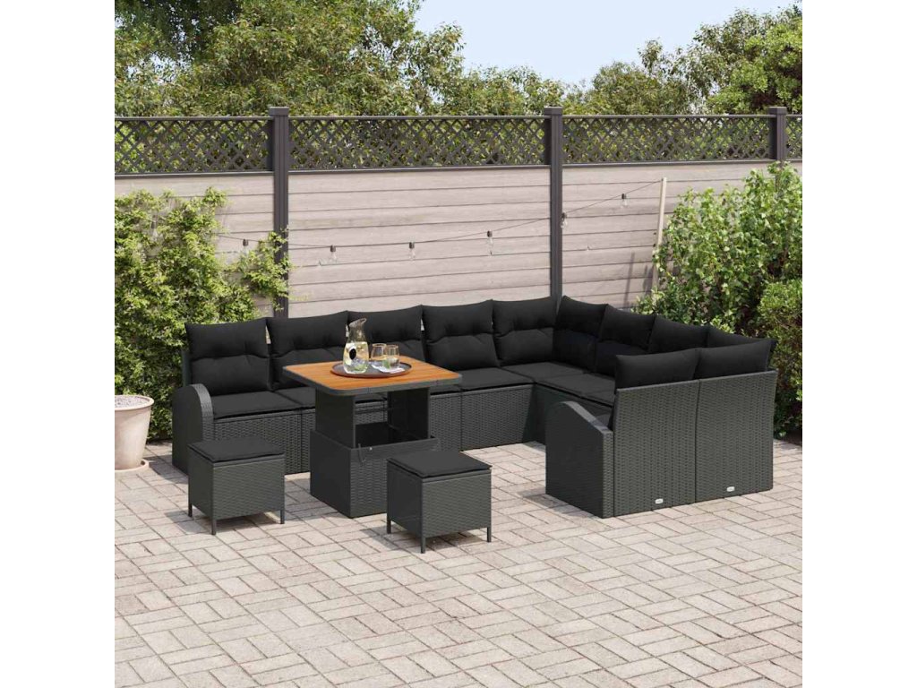 Sada zahradních pohovek s polštářem 12 pcs Černá Poly ratan 3362429