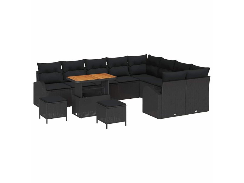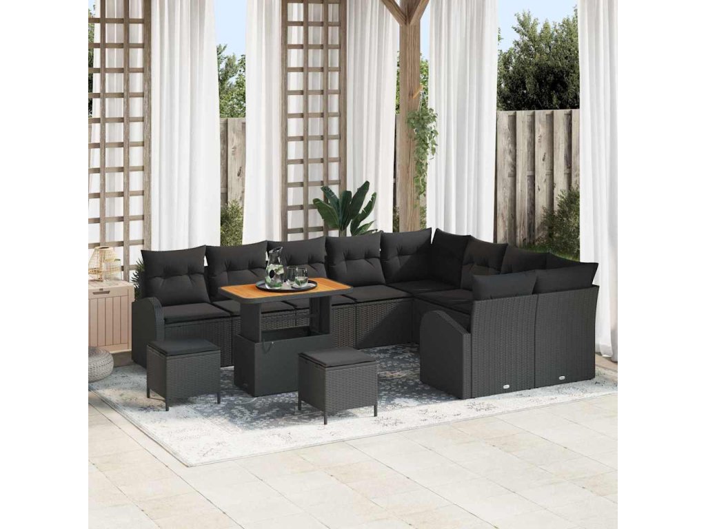 Sada zahradních pohovek s polštářem 12 pcs Černá Poly ratan 3362434