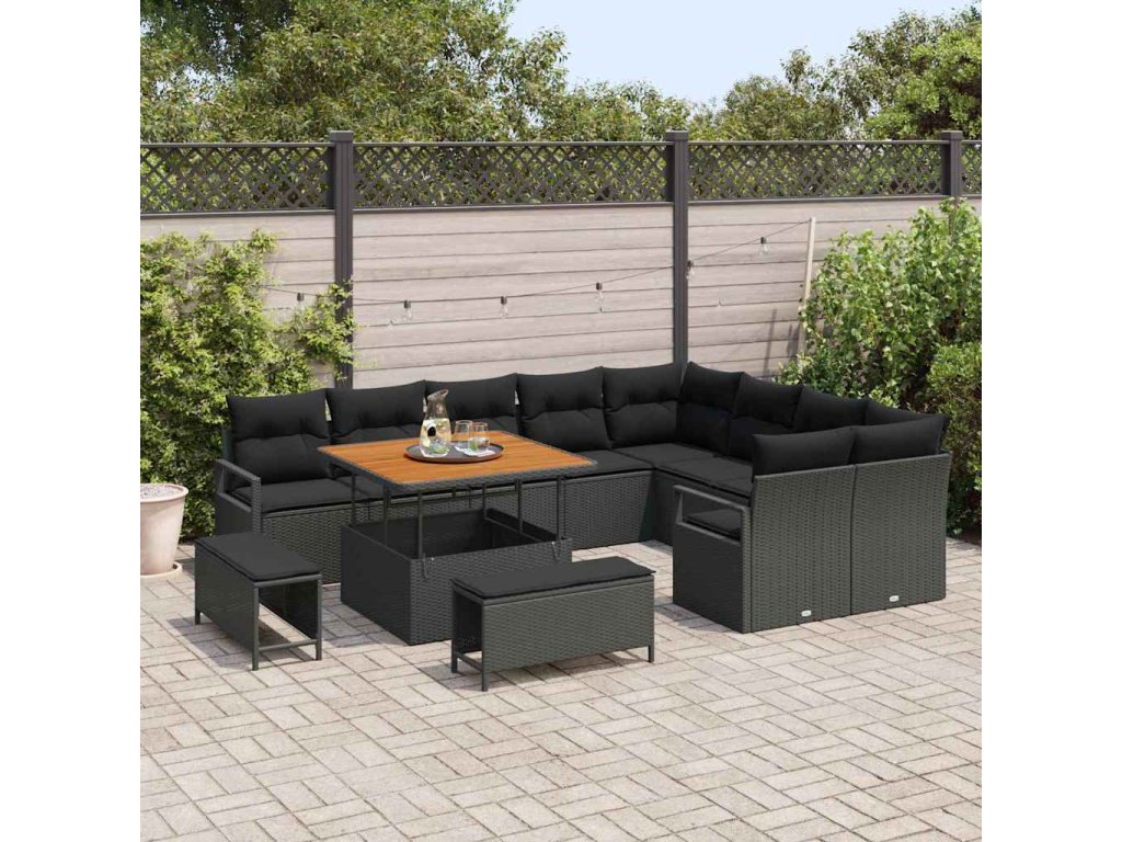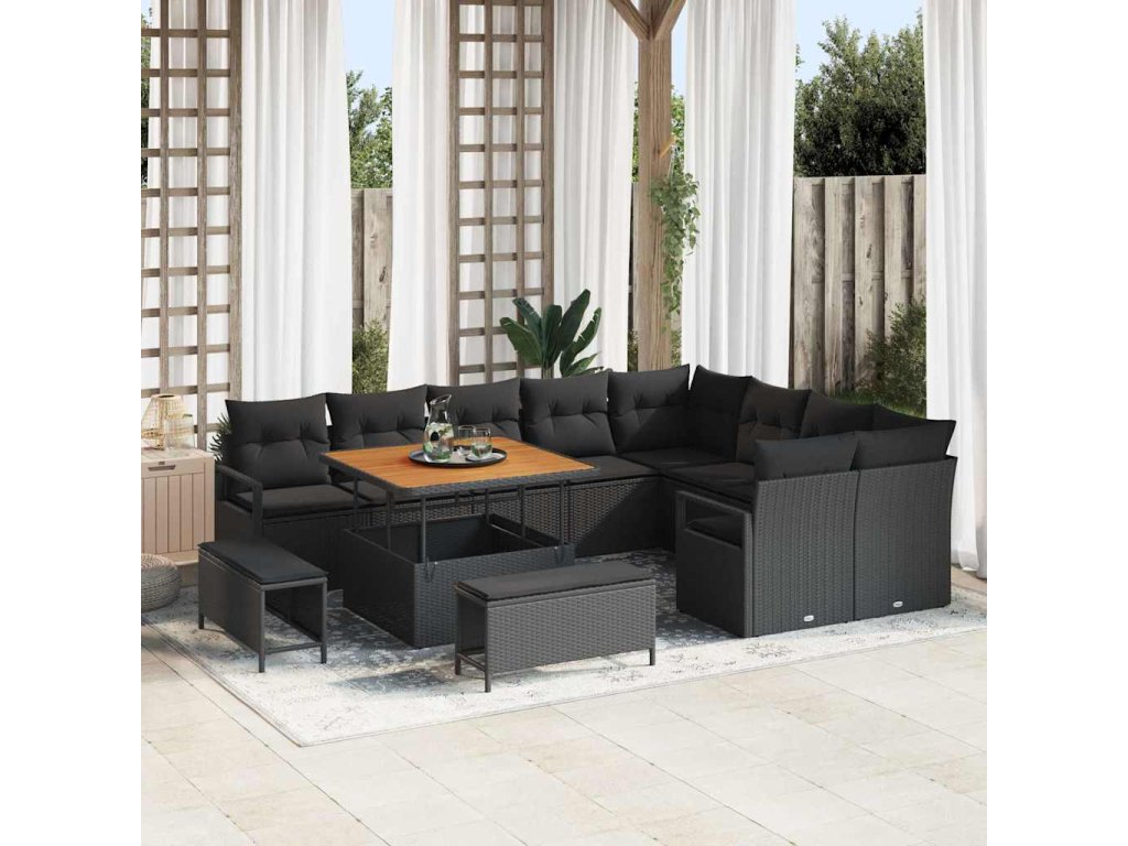 Sada zahradních pohovek s polštářem 12 pcs Černá Poly ratan 3362554