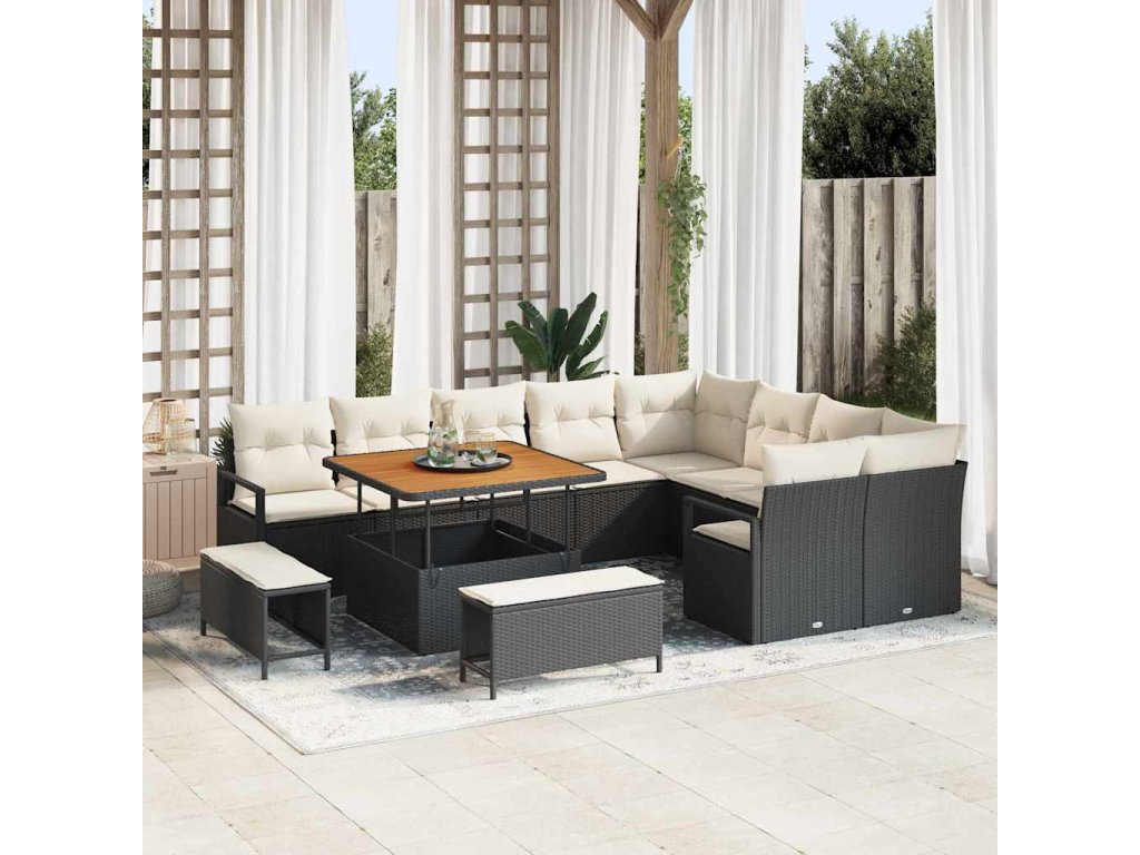 Sada zahradních pohovek s polštářem 12 pcs Černá Poly ratan 3362555