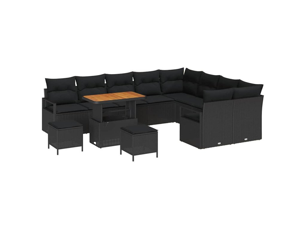 Sada zahradních pohovek s polštářem 12 pcs Černá Poly ratan 3362564