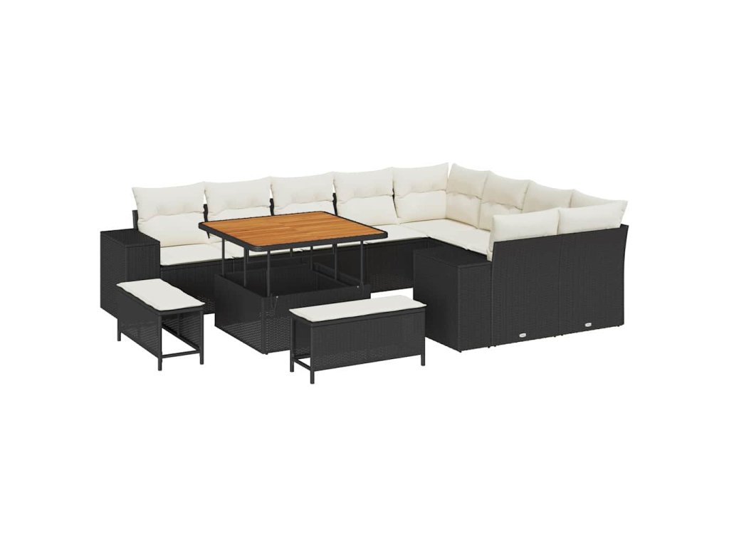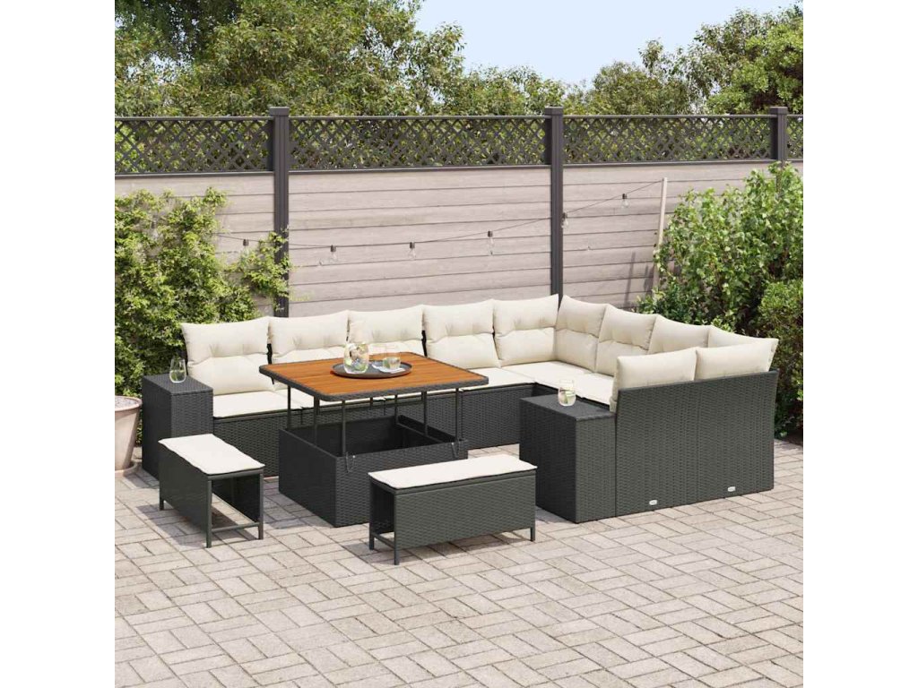 Sada zahradních pohovek s polštářem 12 pcs Černá polyratan 3362035
