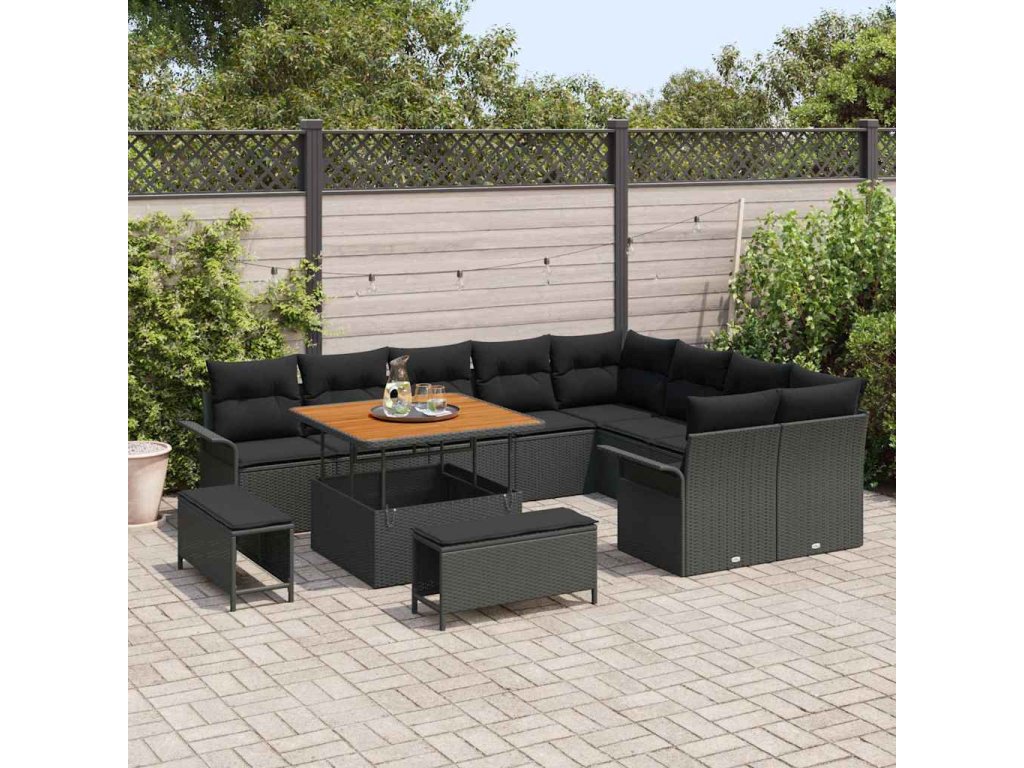 Sada zahradních pohovek s polštářem 12 pcs Černá polyratan 3362164