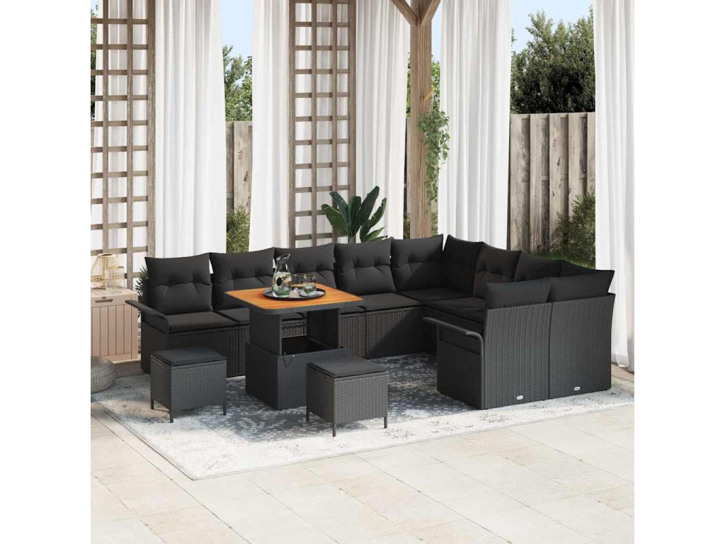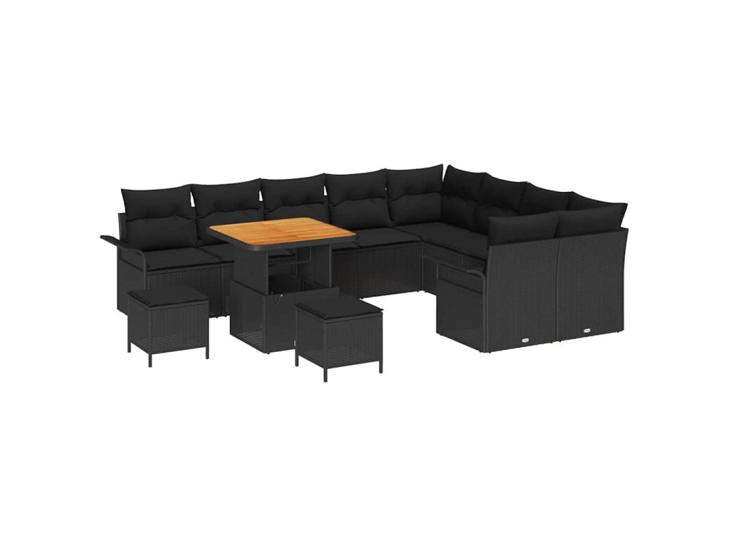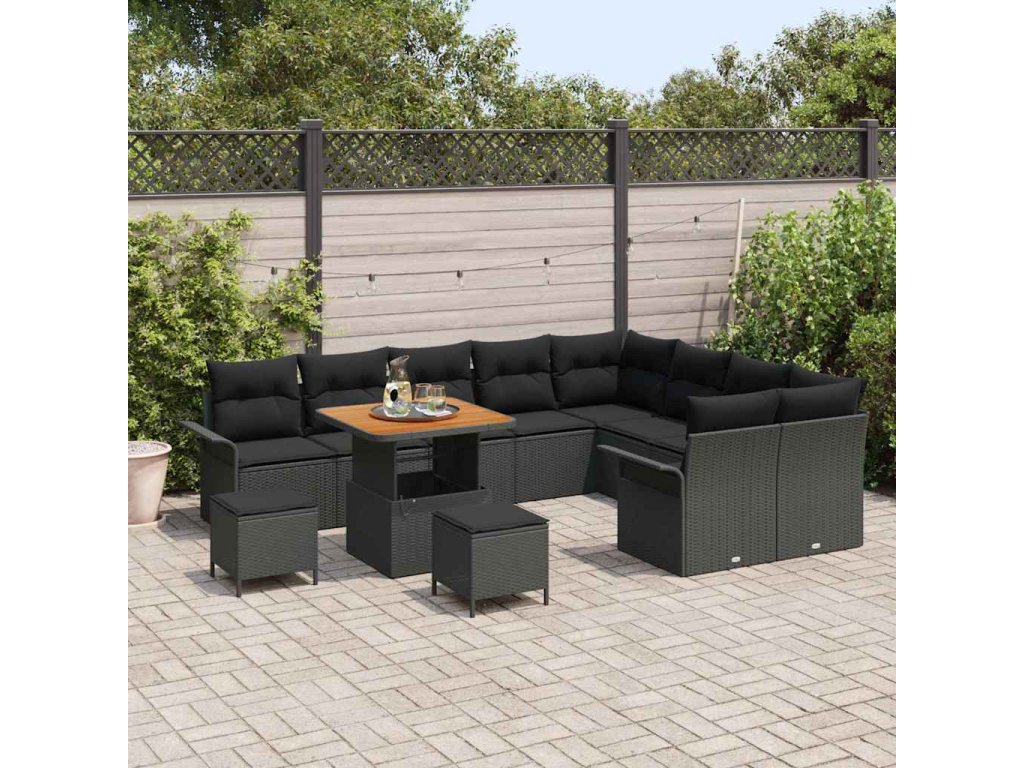 Sada zahradních pohovek s polštářem 12 pcs Černá polyratan 3362169