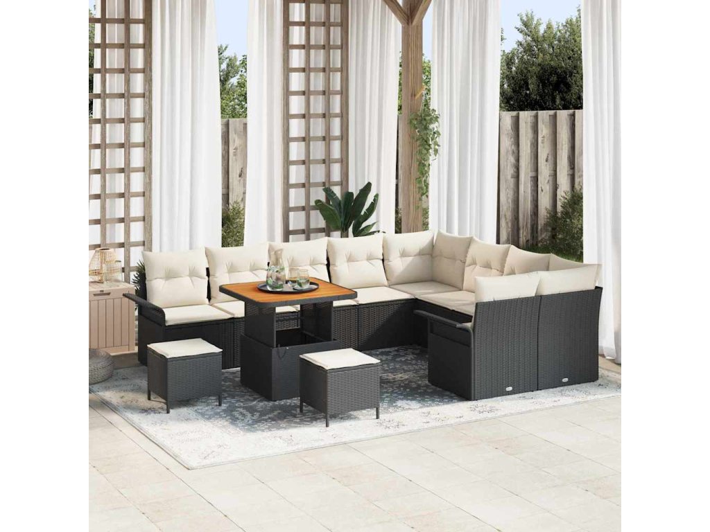 Sada zahradních pohovek s polštářem 12 pcs Černá polyratan 3362170