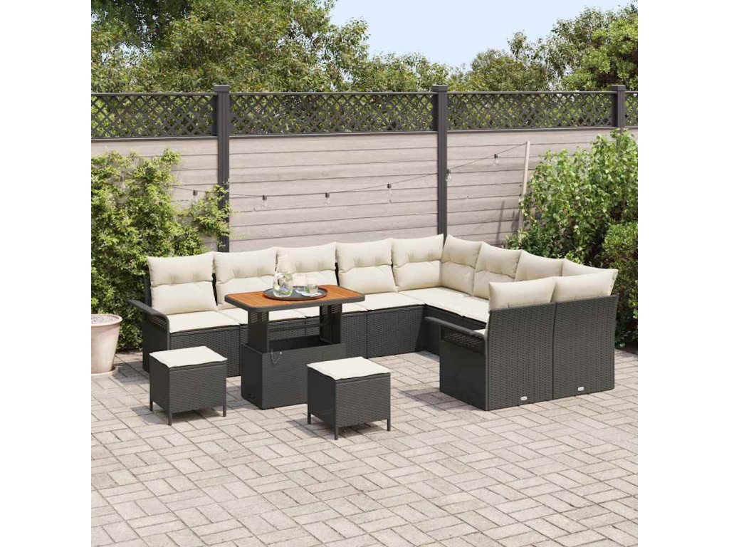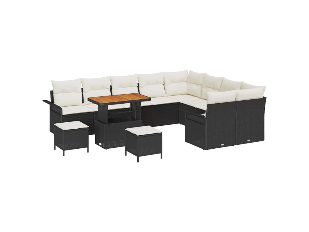 Sada zahradních pohovek s polštářem 12 pcs Černá polyratan 3362175